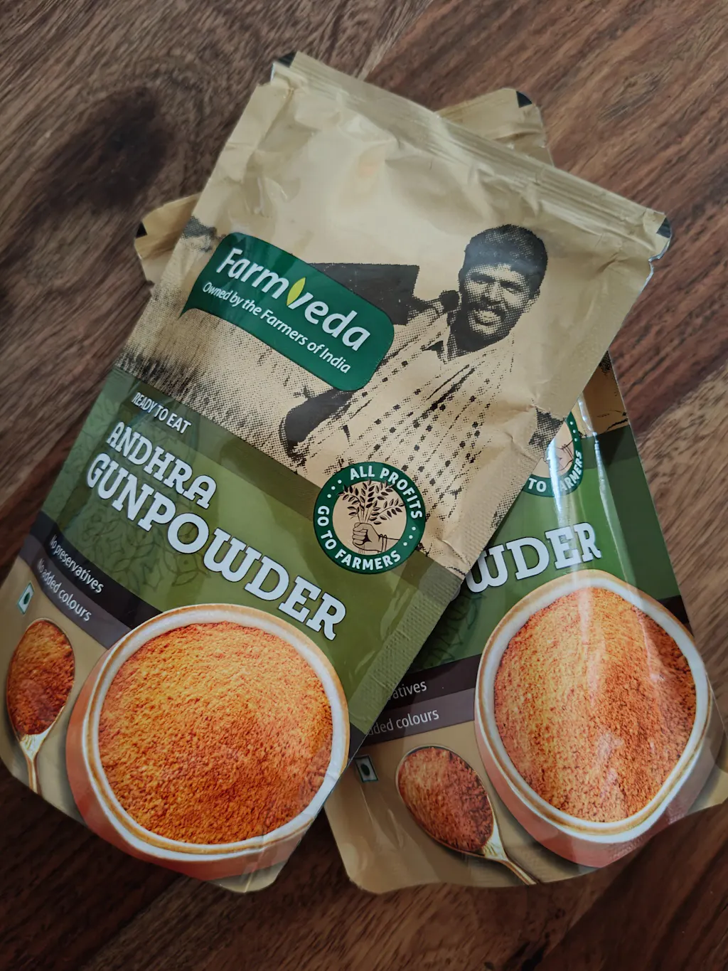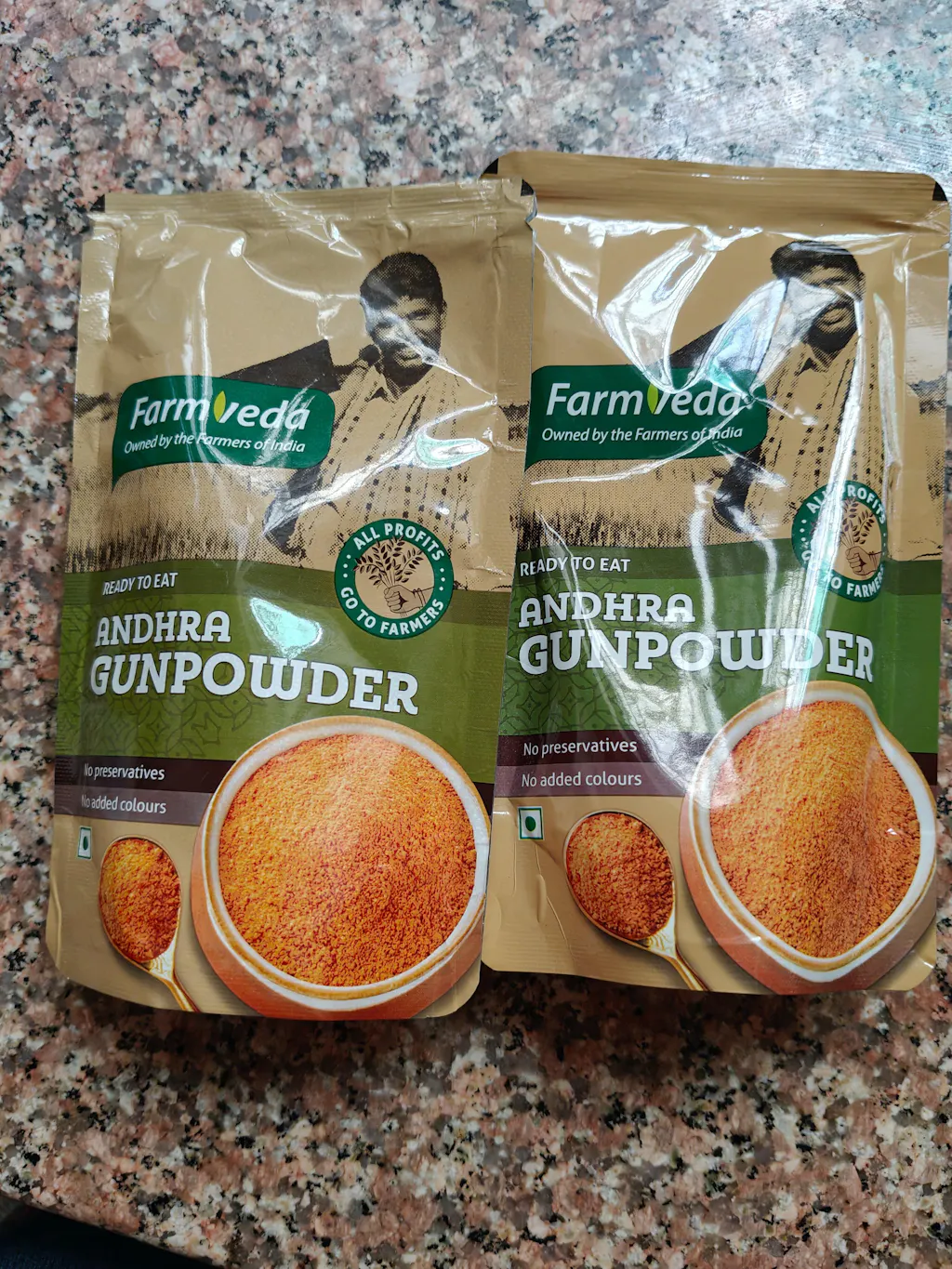 Farmveda’s Andhra Gunpowder is made with naturally grown lentils are seasoned with spices to make this hearty dry chutney. Just sprinkle some Farmveda Andhra Gunpowder over rice, dal, sabzi, paratha and relish the most amazing taste of south Indian cuisine. You can add a tasteful twist to almost any dish with Farmveda Andhra Gunpowder.